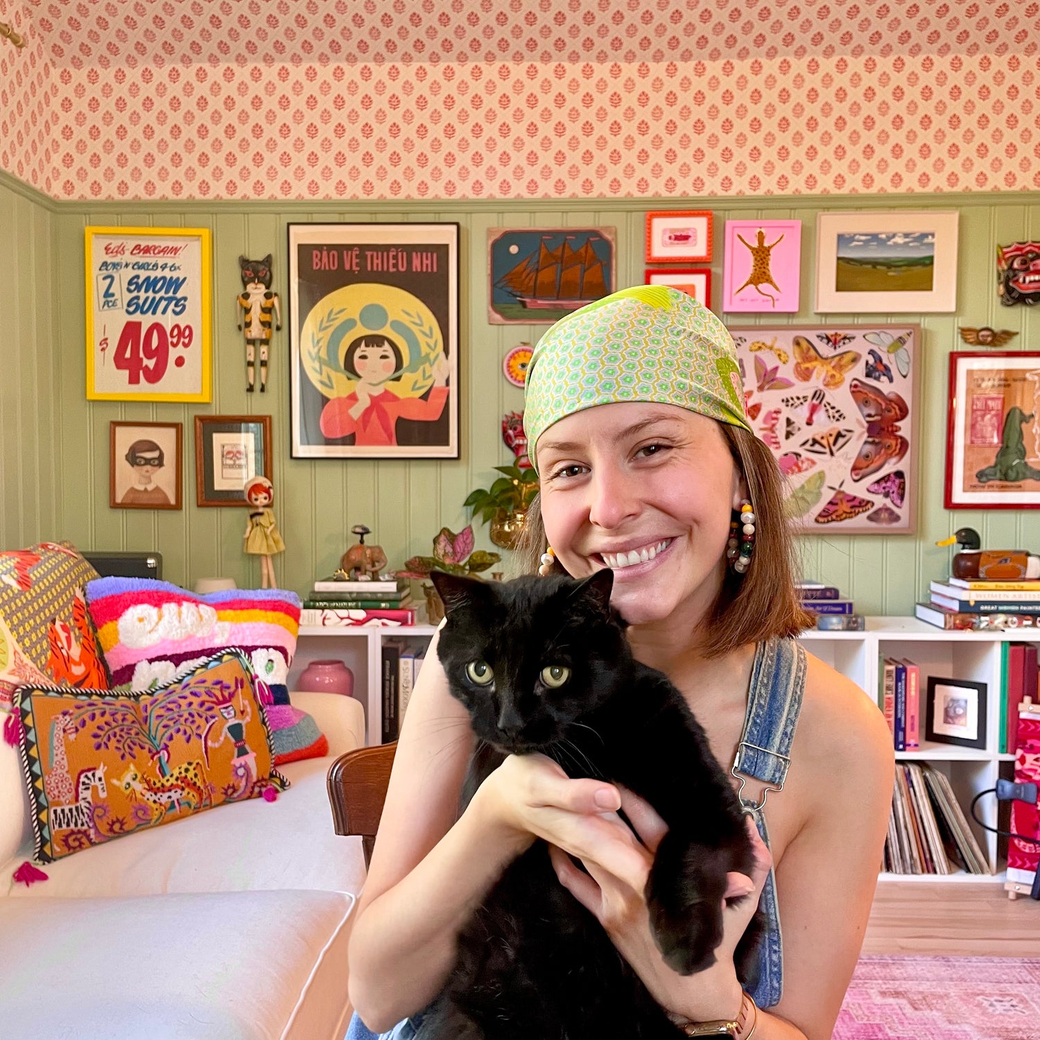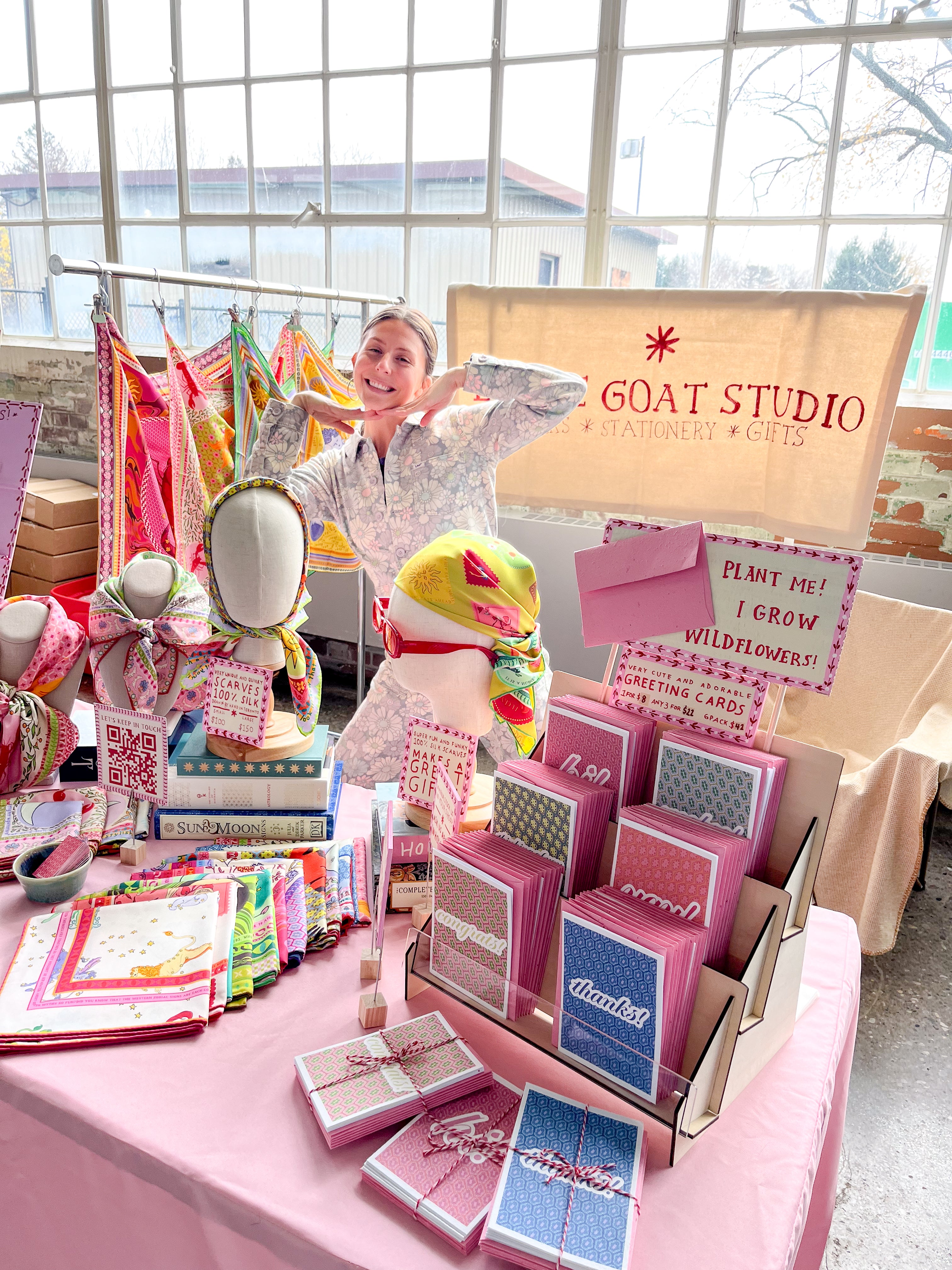 Hi! I'm Helen, the Little Goat behind the studio (my last name means baby goat in French). I draw all the designs for my scarves right here in my studio in Toronto along with my quality control officer, Houdini.