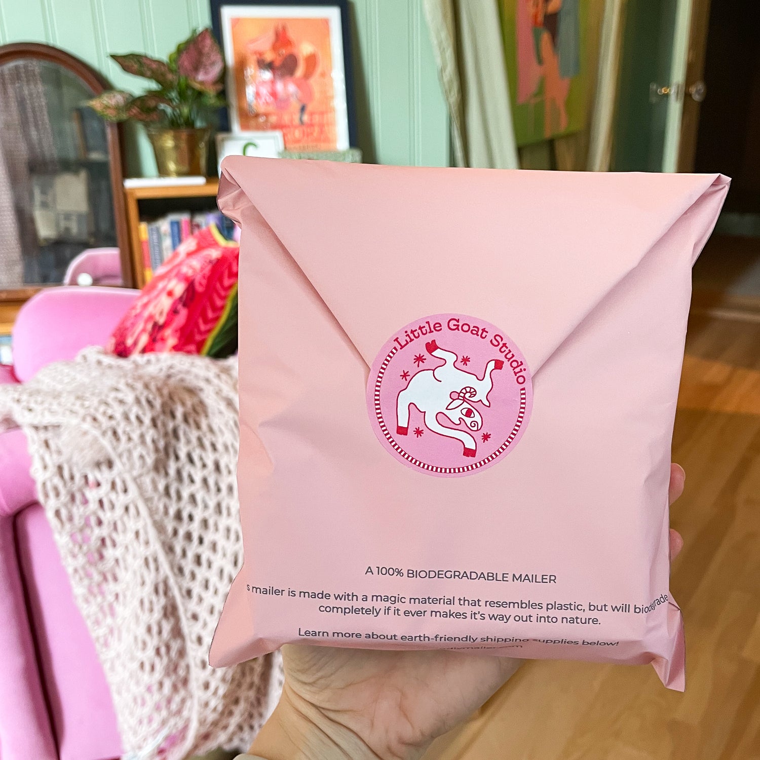 We know it's important for your new treasures to arrive to you safely, so we found a weather-proof solution that isn't going to stick around in a landfill for hundreds of years. Our current shipping mailers are 100% biodegradable, but we're always keeping our eyes out for even more earth-friendly options!