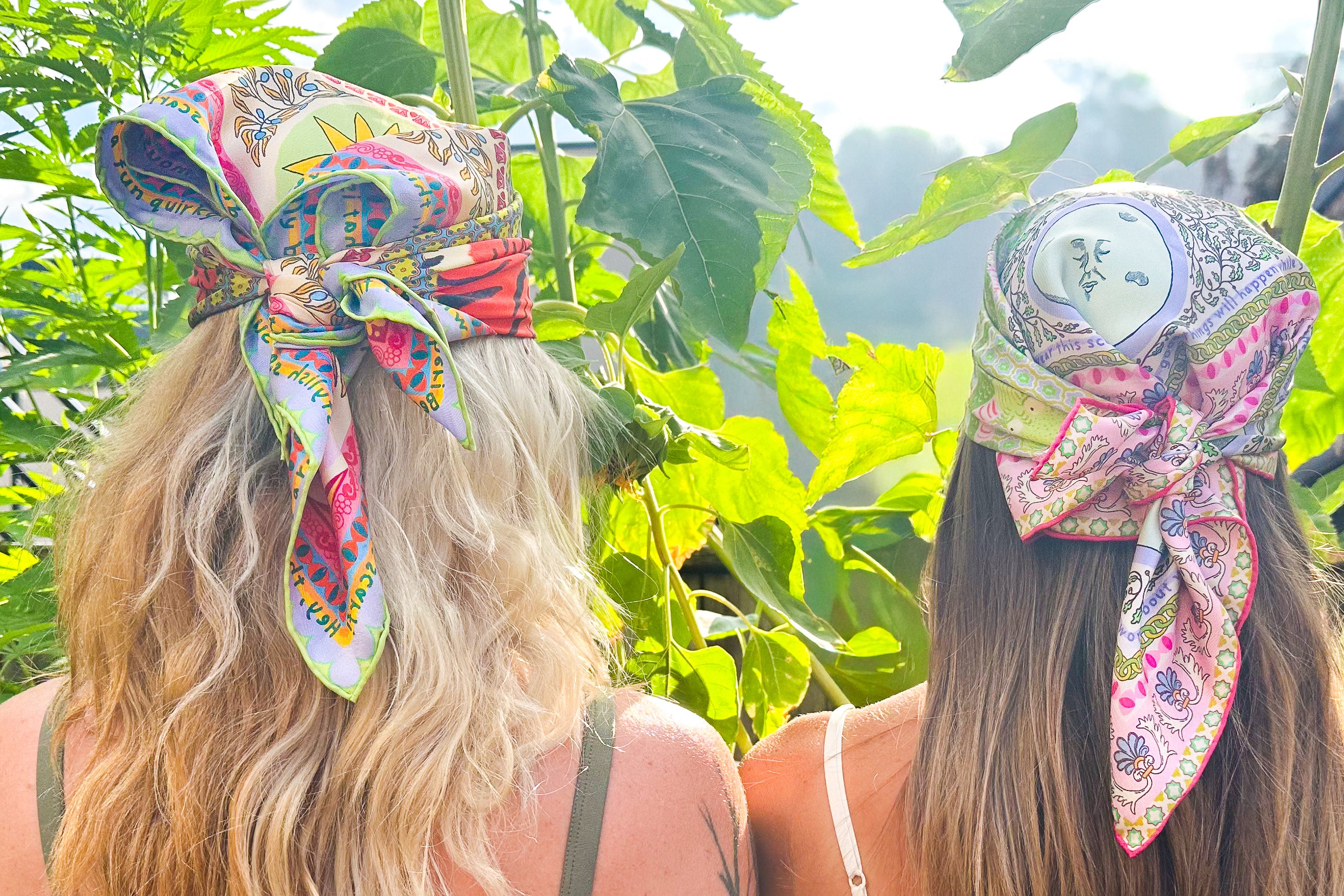 As a small independent business, we work with others to create our final products. Right now, we work with one supplier in China to print and hem our scarves. We always order in very small quantities (think between 5-10 of each design per size) to reduce any excess waste. Our factory partner in Hangzhou have been OEKO-TEX Standard 100 certified for their silk products, as well as the inks they use to print on.