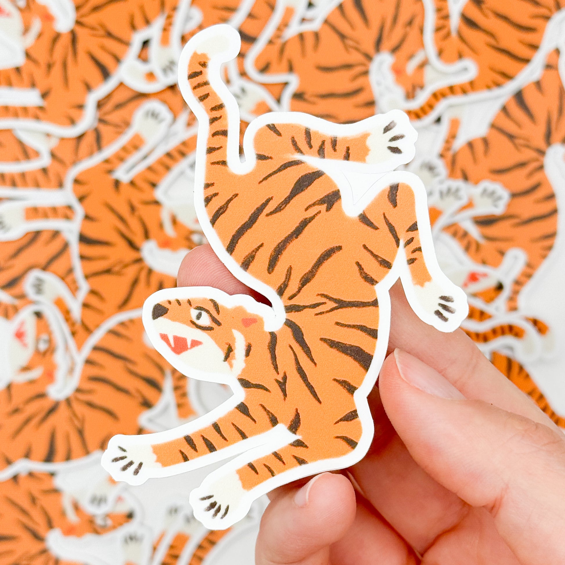 How terrific! A truly terrifying tiger for you to stick on your water bottle, your cool bike, or anywhere you want! This vinyl sticker is..vinyl (duh), so it's durable, and will last a long time!